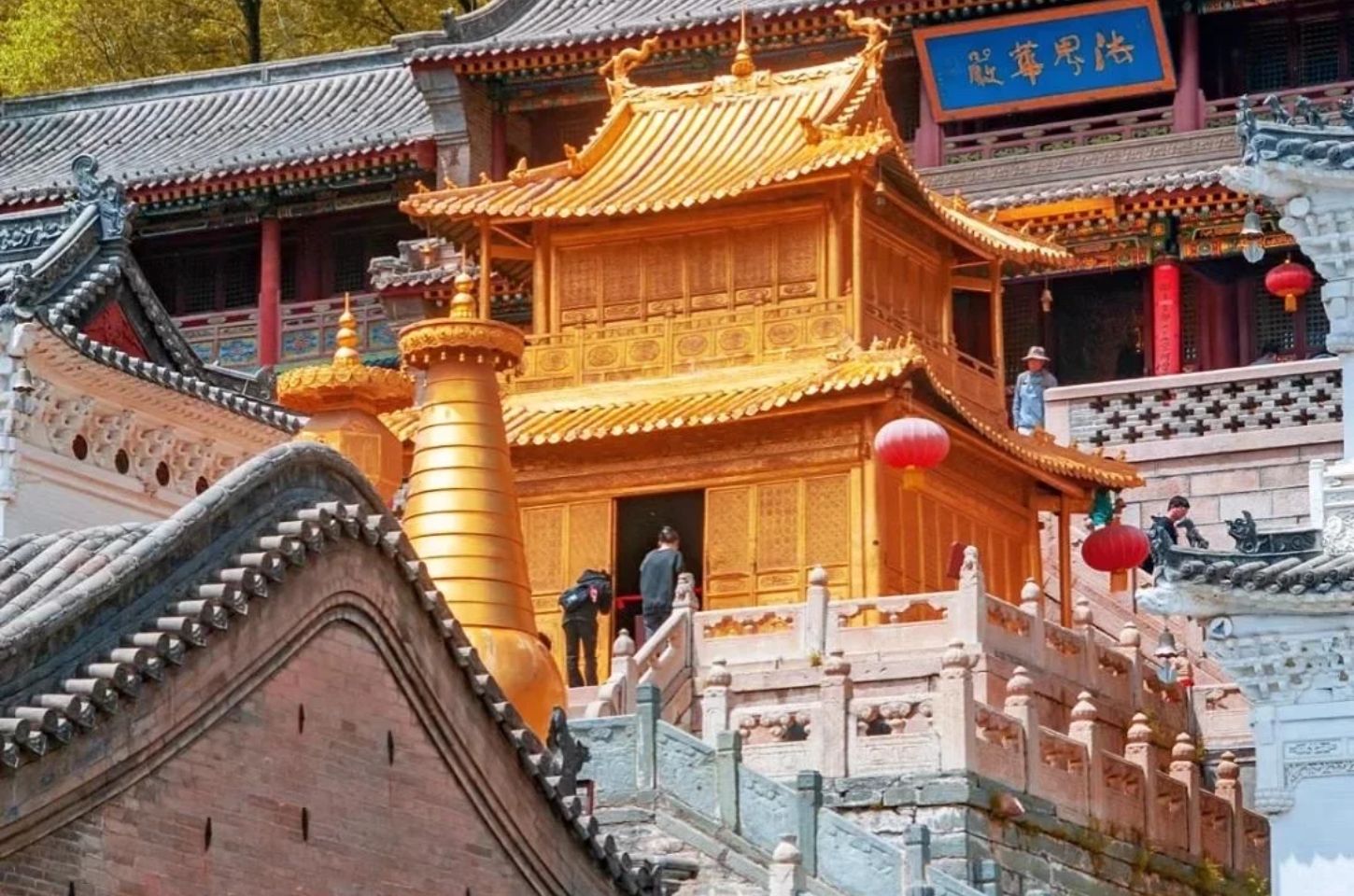 วัดพุทธนิกายทิเบตที่สำคัญที่สุดบนอู่ไถซาน สร้างขึ้นในสมัยราชวงศ์เว่ยเหนือ วัดนี้ตั้งอยู่บนจุดสูงสุดของเนินเขาหลิงจิว ทำให้เห็นทิวทัศน์ของหุบเขาอู่ไถซานได้แบบพาโนรามา สถาปัตยกรรมของวัดนี้มีความพิเศษตรงที่ใช้กระเบื้องเคลือบสีเหลืองทองมุงหลังคา ซึ่งเป็นสัญลักษณ์เฉพาะสำหรับอาคารที่เกี่ยวข้องกับจักรพรรดิ เนื่องจากในอดีตจักรพรรดิราชวงศ์ชิงมักจะเสด็จมาประทับที่นี่ ทางขึ้นวัดเป็นบันไดหิน 108 ขั้นที่ทอดตัวสูงขึ้นไป สื่อถึงการก้าวข้ามผ่านกิเลสและความทุกข์ทั้ง 108 ประการ บรรยากาศภายในวัดเต็มไปด้วยมนต์ขลังของเสียงสวดมนต์ และธงมนต์สีสันสดใสที่โบกสะบัดตามแรงลมภูเขา สร้างความรู้สึกสงบและเปี่ยมไปด้วยพลังอย่างแท้จริง