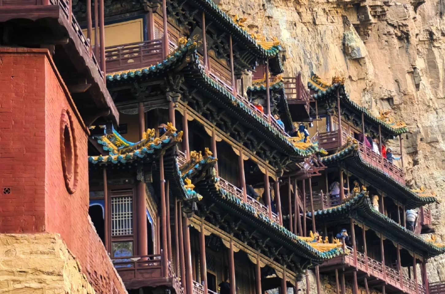หรือเรียกอีกชื่อว่าวัดซวนคงซื่อ (Xuankong Si) วัดแห่งนี้สร้างขึ้นบนหน้าผาของภูเขาเหิงซาน หนึ่งในห้าภูเขาศักดิ์สิทธิ์ที่สุดของจีน เป็นวัดที่มีการผสมผสานของสามศาสนา ได้แก่ ขงจื๊อ ลัทธิเต๋า และพุทธศาสนา ความอัศจรรย์ของวัดแห่งนี้อยู่ที่การใช้คานไม้ซุงปักเข้าไปในเนื้อหิน เพื่อเป็นฐานรองรับตัวอาคารไม้ที่ลดหลั่นกันไปตามแนวผา ประมาณ 1 ใน 3 ของตัวอาคารจะแขวนอยู่บนหน้าผา โดยมีห้องโถงต่าง ๆ เชื่อมต่อกันด้วยทางเดินและสะพานที่คดเคี้ยว เมื่อมองจากด้านล่างจะเห็นเพียงเสาไม้เล็ก ๆ ค้ำยันไว้จนดูเหมือนวัดกำลังลอยอยู่กลางอากาศ วัดแห่งนี้ตั้งอยู่บริเวณส่วนเว้าของหน้าผา จึงทำให้ปลอดภัยจากฝนและหินถล่มมากว่า 1,500 ปี รวมไปถึงตำแหน่งที่สูงของวัดจึงทำให้ปลอดภัยจากน้ำท่วมอีกด้วย